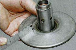 Чтобы разобрать муфту, открутите винты, крепящие ее крышку. Снимая её и расположенную под ней пластину с направляющими канавками (держатель грузиков), будьте осторожны - не повредите резиновое уплотнительное кольцо. Добравшись до грузиков, оцените состояние их рабочих поверхностей: они должны быть цилиндрическими, без следов износа. Не должны быть изношенными и желобообразные поверхности в корпусе муфты. Перед сборкой смажьте эти поверхности небольшим количеством консистентной смазки.