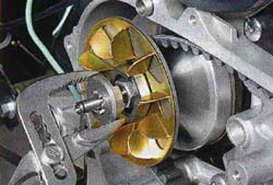 Чтобы добраться до ротора генератора, который и предстоит застопорить, снимите правую нижнюю часть облицовки (соблюдайте при этом те же предосторожности, что и при демонтаже левой). Затем-снимите кожух системы охлаждения и крыльчатку вентилятора. Теперь можно фиксировать ротор генератора - для этого существует несколько типов приспособлений. Можно и без них, если, придерживая ротор руками, откручивать гайку с помощью ударной отвертки или пневмогайковерта с насадкой-переходником под шестигранную головку.