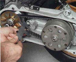 На некоторых скутеров можно снять ремень, разжав половинки ведомого шкива руками.