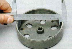 Если выработка барабана центробежного сцепления превышает 0,5 мм, замените его.